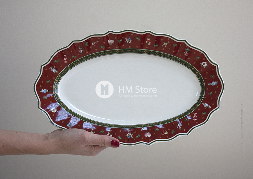 Известный во всем мире производитель престижной посуды Villeroy & Boch предлагает насладиться новогодними и рождественскими праздниками в полной мере. Коллекция Toy’s Delight имеет радостный и игривый дизайн, но в то же время в ней соблюдены традиционные для такой тематики цвета – красный и зеленый. Такую посуду можно использовать не только по праздникам, но и каждый день на протяжении всей зимы. Представленное в данном обзоре овальное блюдо создано для подачи мясных блюд с гарниром, рыбы, либо же закусок или сладостей. Это прекрасный способ угостить гостей своим кулинарным творением, и при этом удивить их красивым и атмосферным дизайном.