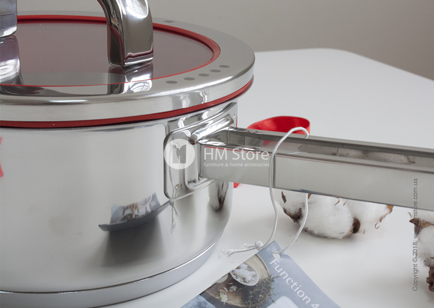 Серия посуды Function 4 была разработана в сотрудничестве с немецким дизайнерским агентством NOA Intelligent Design, а вдохновением для создания крышек стала кнопка от Apple iPod. Крышка изготовлена из комбинации нержавеющей стали, термостойкого стекла и силикона. Она выполняет четыре различные функции наподобие кнопки iPod. В зависимости от положения сотейника жидкость можно сливать с крышкой – полностью или контролируемым образом: