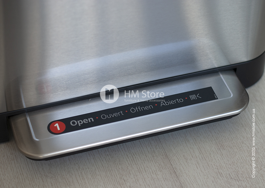 И конечно же бак снабжен педалью для бесконтактного открытия крышки контейнера.