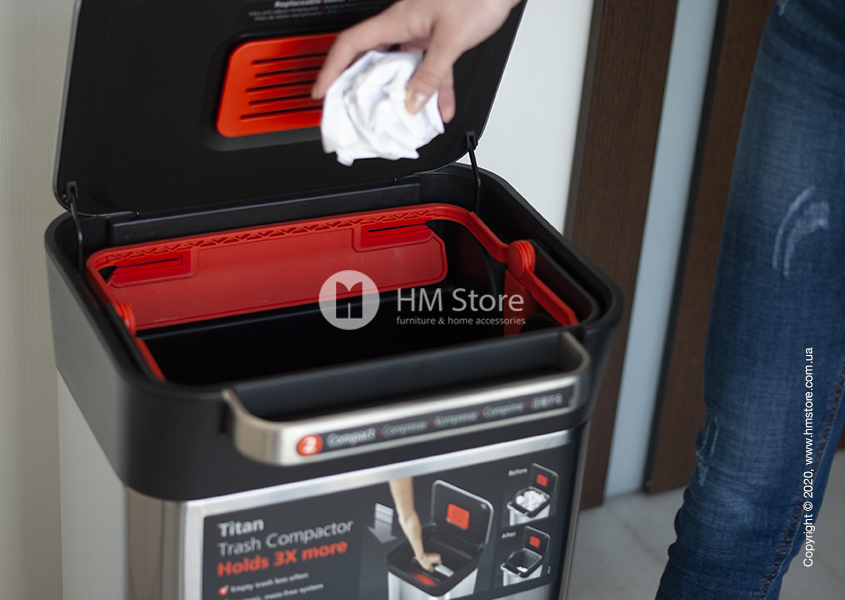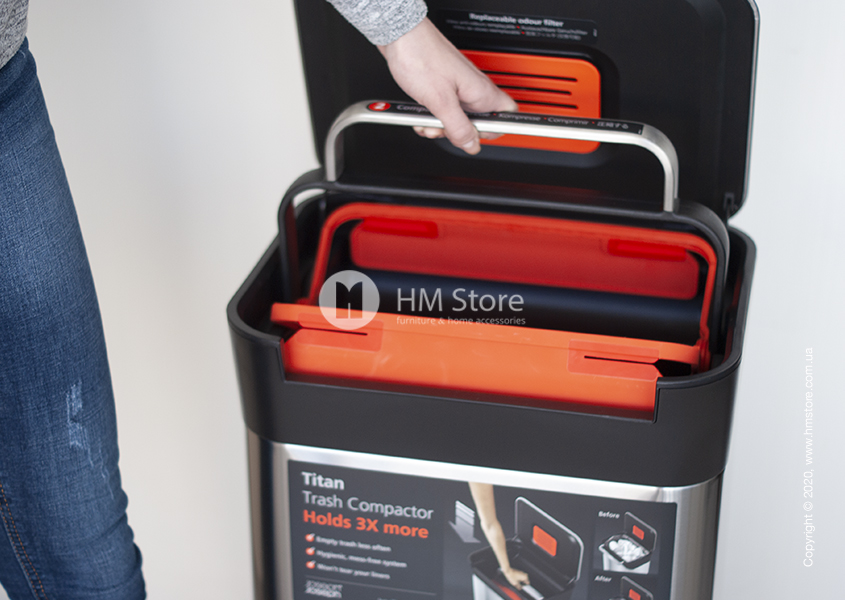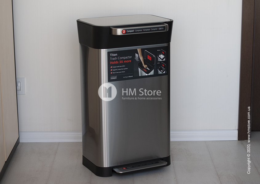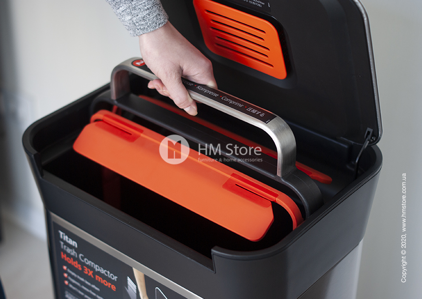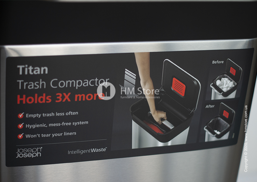 Поэтому торговая марка Joseph Joseph выпустила инновационный бак для сбора мусора Titan 30 Trash Compactor, со специальной запатентованной системой прессовки отходов, объем органайзера составляет 30 литров.