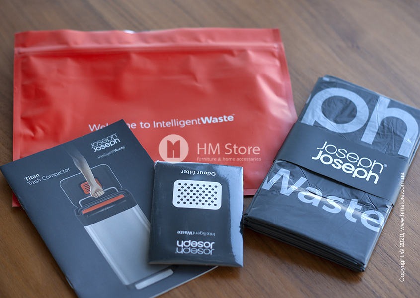 ![Распакрвка органайзера для мусора Joseph Joseph Titan 30 Trash Compactor]()