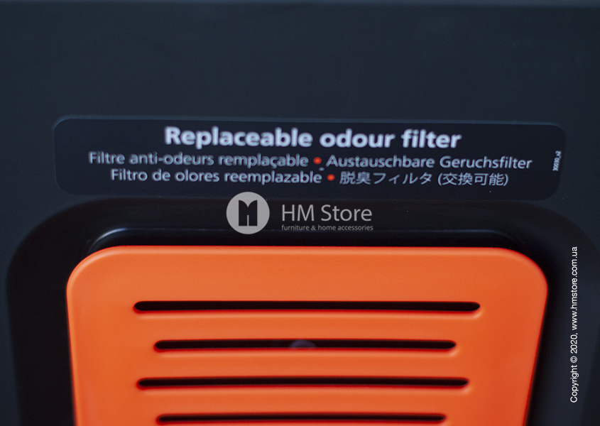 Помимо этого крышка контейнера оснащена встроенным угольным фильтром, который эффективно борется с неприятными запахами.