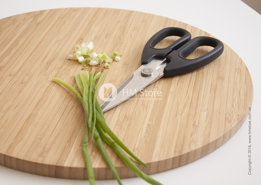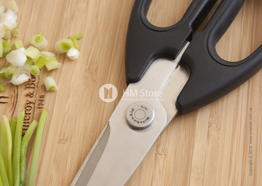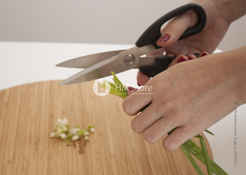 Универсальные ножницы предназначены для использования как на кухне, так и за её пределами. Ими можно резать бекон или курицу, стричь листья тимьяна, резать хлеб или пиццу и многое другое. Длина ножниц – 20,8 см.