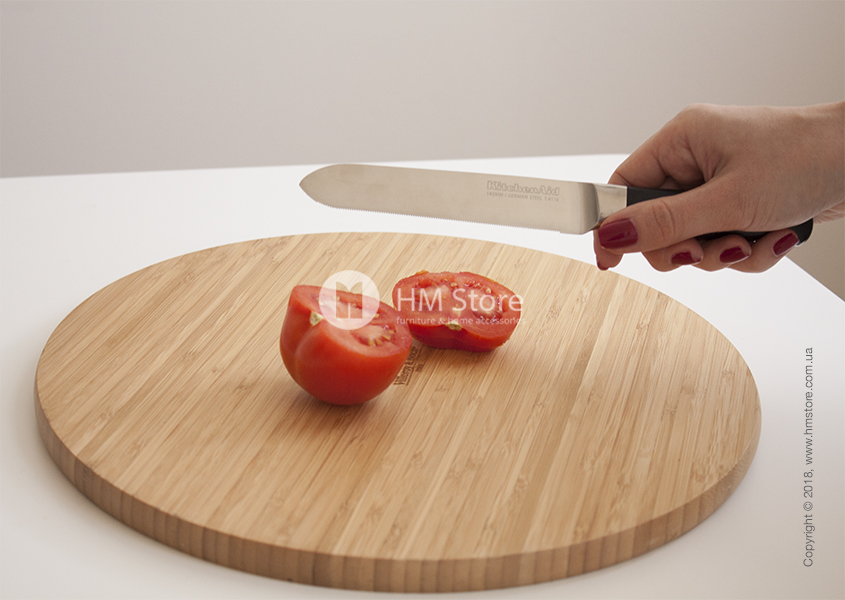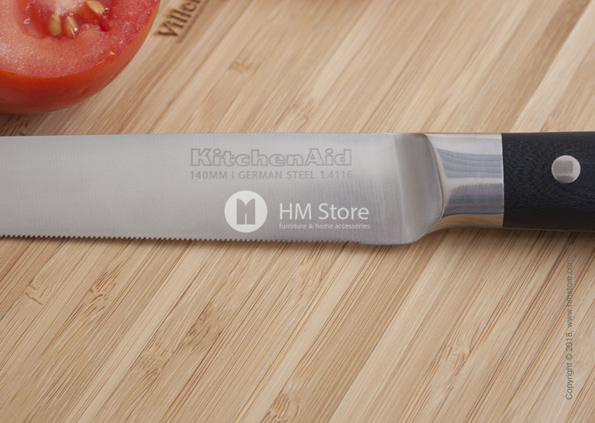 Подходит для нарезки фруктов, овощей, небольшого хлеба и многих других продуктов. Также нож, благодаря зубчатому лезвию, особенно эффективен для нарезки помидоров, салями, круассанов и других мелких продуктов с твердой корочкой. Длина ножа – 13 см.