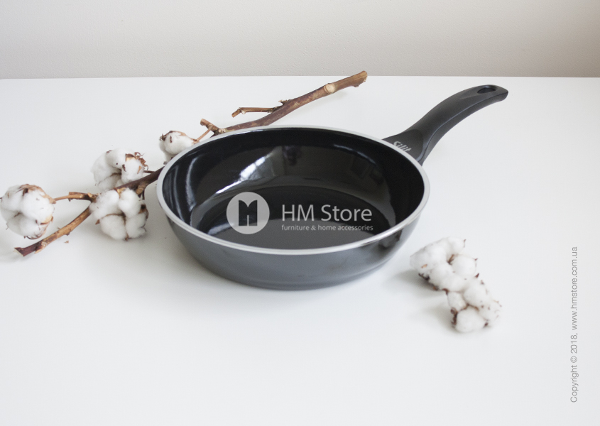 Основание изделия произведено из стали, которая способствует быстрой передаче тепла и длительному сохранению температуры продуктов. Сверху она покрыта керамикой Silargan, которой присущи антикоррозионные свойства, прочность и устойчивость к царапинам. Сковорода выдерживает воздействие температур до 250°C на плите или до 70°C в духовке, а также подходит для всех видов плит. Ручка выполнена из пластика и не нагревается.
