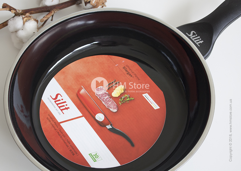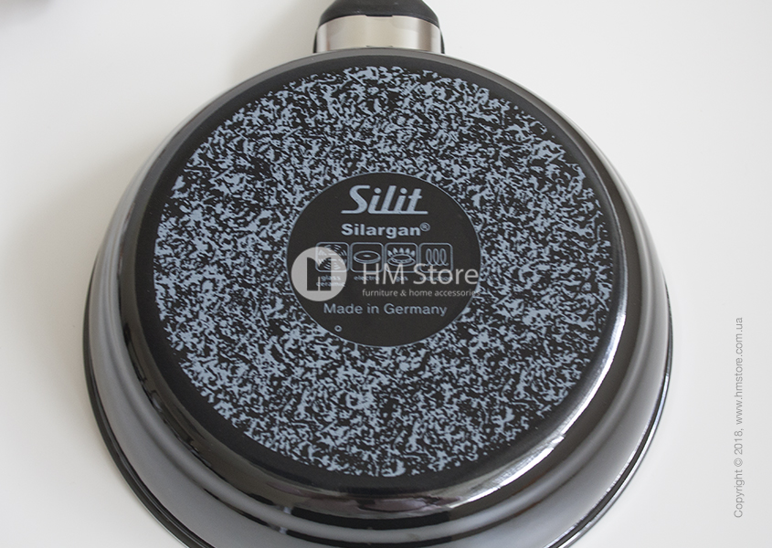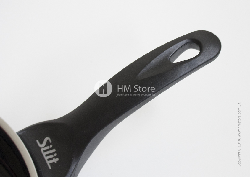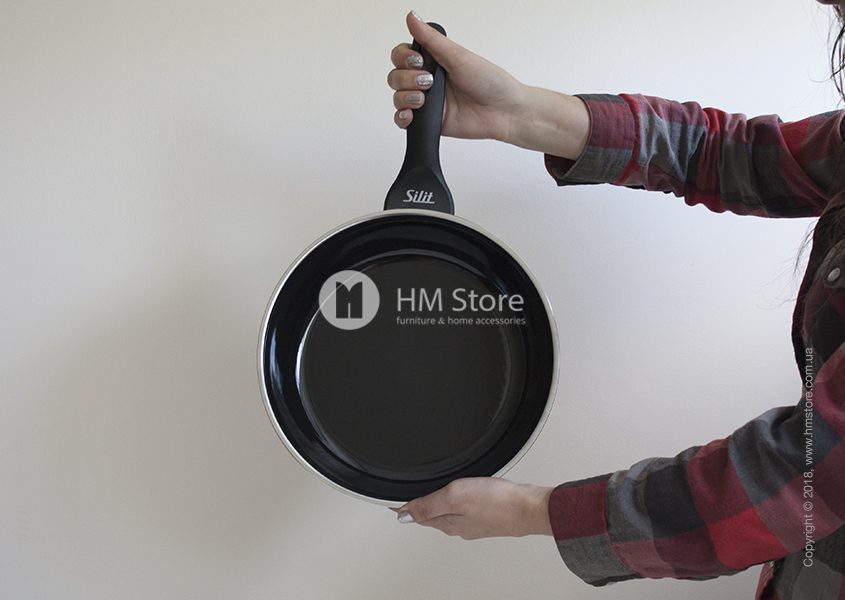 Сковорода Silit имеет круглую форму и высокие стенки (5,7 см), благодаря чему в ней можно тушить большое количество продуктов (емкостью до 2 л). Широкий заливочный обод позволяет аккуратно заливать жидкие ингредиенты. Сковорода имеет удобную ручку, что позволяет комфортно перемещать её из плиты на другую кухонную поверхность.