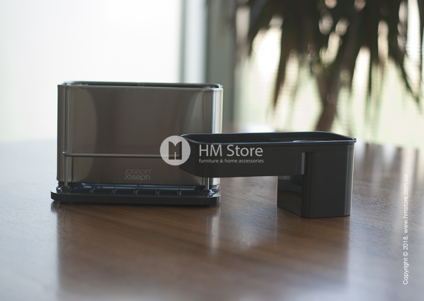 Корпус Joseph Joseph Surface Sink Tidy выполнен из нержавеющей стали со специальным покрытием против отпечатков пальцев. Таким образом, подставка будет выглядеть красиво без постоянной чистки. Вертикальный боковой держатель для губок также выполнен из нержавеющей стали. Внутренняя перекладина и дно сделаны из прочного высококачественного пластика темно-серого цвета. Такой контраст цветов и материалов создает стильное и эффектное сочетание.
