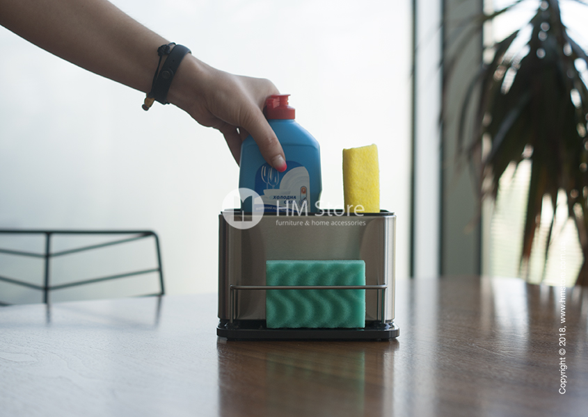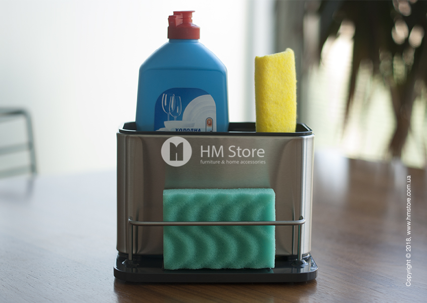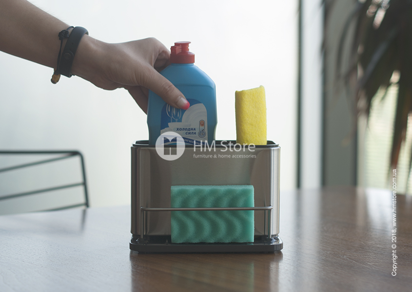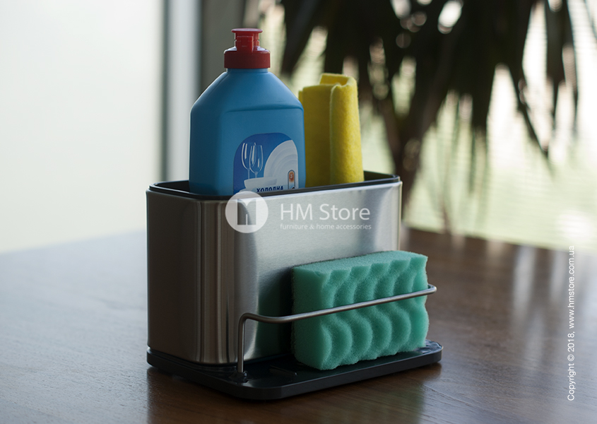 Joseph Joseph Surface Sink Tidy – это в первую очередь аксессуар для хранения. Он состоит из трех отсеков: большого глубокого, малого глубокого и широкого бокового. В большой отсек идеально поместиться средство для мытья посуды. В малый – щетка, ёршик или тряпка. Боковой же отсек предназначен для мочалок и губок для мытья посуды или раковины.