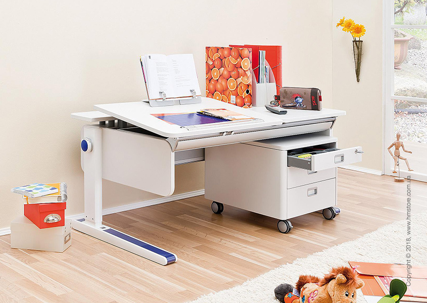 Школьные парты немецкой компании moll регулируются по высоте и углу наклона. Оборудованы массой полезных ящиков и отделений. Механизм трансформации отличается прочностью и простотой использования. Поднять, передвинуть и наклонить стол ребенок сможет сам, без вашей помощи. Сама парта сделана так, чтобы заинтересовать школьника: есть, что покрутить, куда спрятать «сокровища», различные органайзеры.